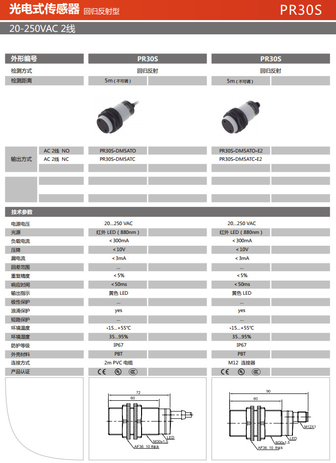 詳細(xì)信息 PR30S-DM5ATO,PR30S-DM5ATC,PR30S-DM5ATO-E2,PR30S-DM5ATC-E2,光電式傳感器