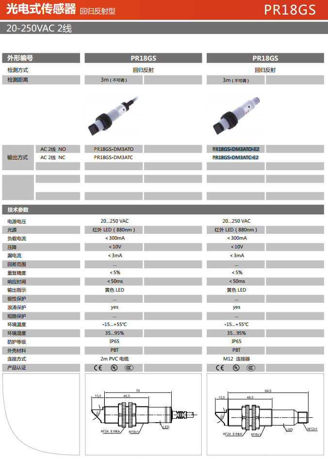 詳細信息 PR18GS-DM3ATO,PR18GS-DM3ATC,PR18GS-DM3ATO-E2,PR18GS-DM3ATC-E2,光電式傳感器