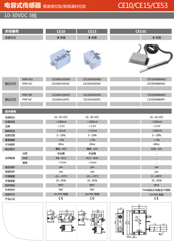 詳細(xì)信息 CE10SN13DNO,CE10SN13DNC,CE15SN26DNO,CE15SN26DNC,CE10SN13DPO,CE10SN13DPC,CE15SN26DPO,電容式傳感器