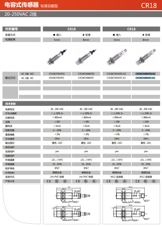 詳細信息 CR18CF05ATO,CR18CF05ATC,CR18CN08ATO,CR18CN08ATC,CR18CF05ATO-E2,CR18CF05ATC-E2,CR18CN08ATO-E2,CR18CN08ATC-E2,電容式傳感器