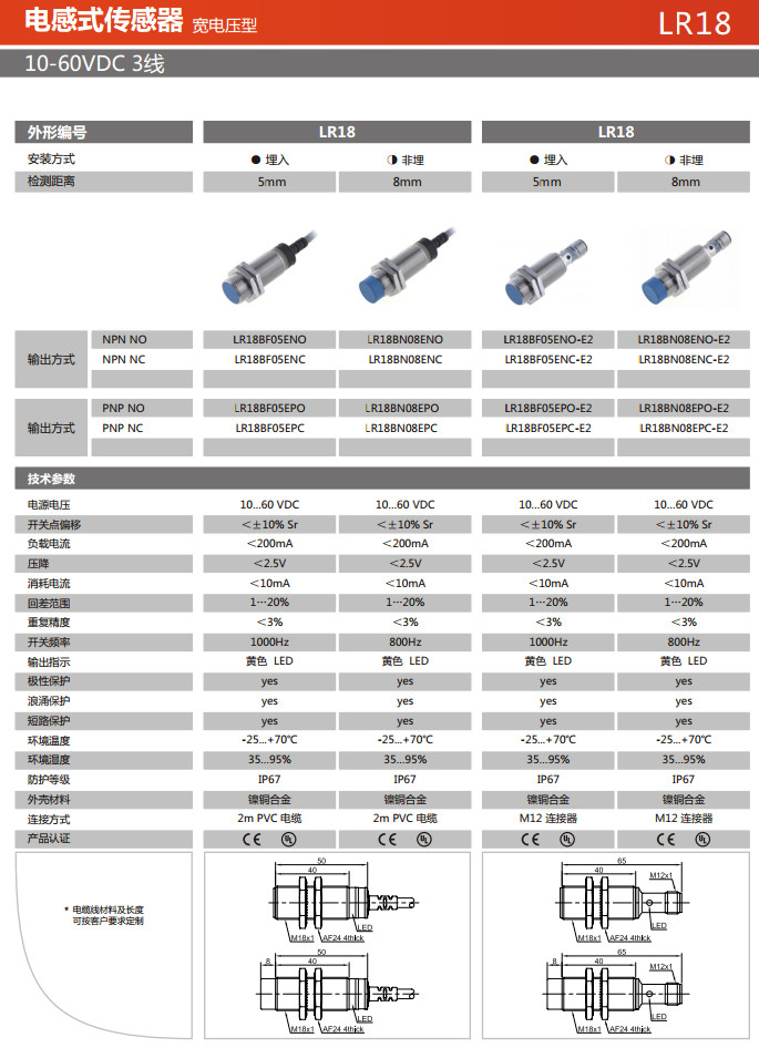 詳細信息 LR18BF05ENO,LR18BF05ENC,LR18BF05EPO,LR18BF05EPC,LR18BN08ENO,LR18BN08ENC,LR18BN08EPO,電感式傳感器