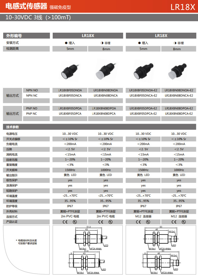 LR18XBF05DNOA,LR18XBF05DNCA,LR18XBN08DNOA,LR18XBN08DNCA,LR18XBN08DPOA,電感式傳感器