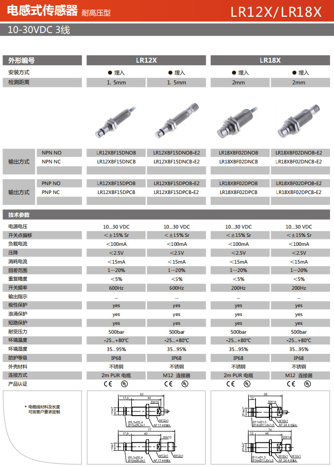 LR12XBF15DNOB,LR12XBF15DNCB,LR12XBF15DNOB-E2,LR12XBF15DNCB-E2,LR12XBF15DPOB-E2,電感式傳感器