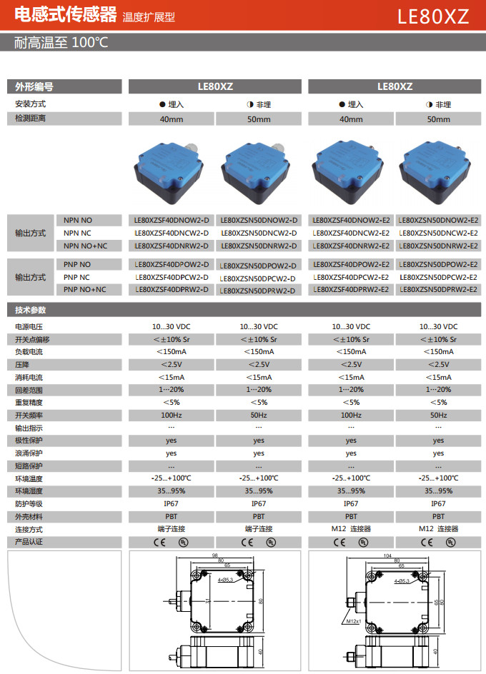 LE80XZSF40DNOW2-D,LE80XZSF40DNCW2-D,LE80XZSF40DNRW2-D,LE80XZSF40DPOW2-D,電感式傳感器