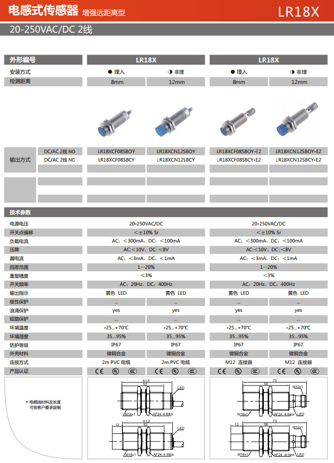 詳細(xì)信息 LR18XCF08SBOY,LR18XCF08SBCY,LR18XCN12SBOY,LR18XCN12SBCY,LR18XCF08SBOY-E2,電感式傳感器