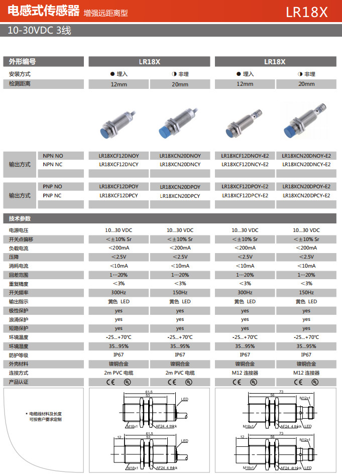 詳細信息 LR18XCF12DNOY,LR18XCF12DNCY,LR18XCN20DNOY,LR18XCN20DNCY,LR18XCF12DPOY-E2,電感式傳感器