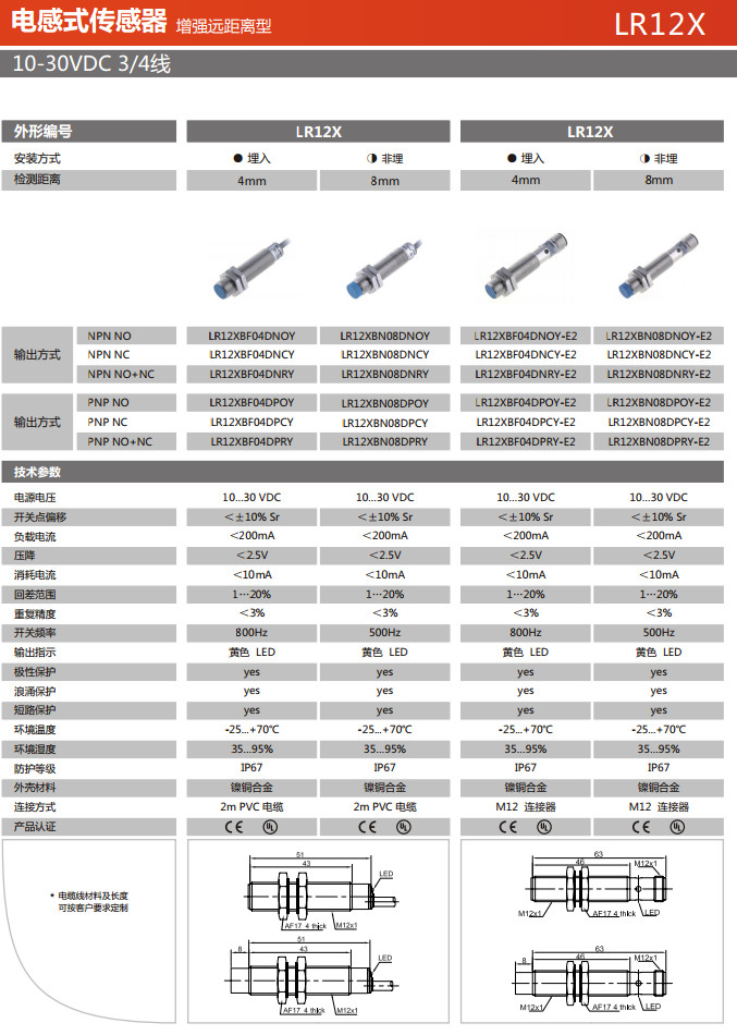 詳細(xì)信息 LR12XBF04DNOY,LR12XBF04DNCY,LR12XBF04DNRY,LR12XBN08DNOY,LR12XBN08DNCY,電感式傳感器
