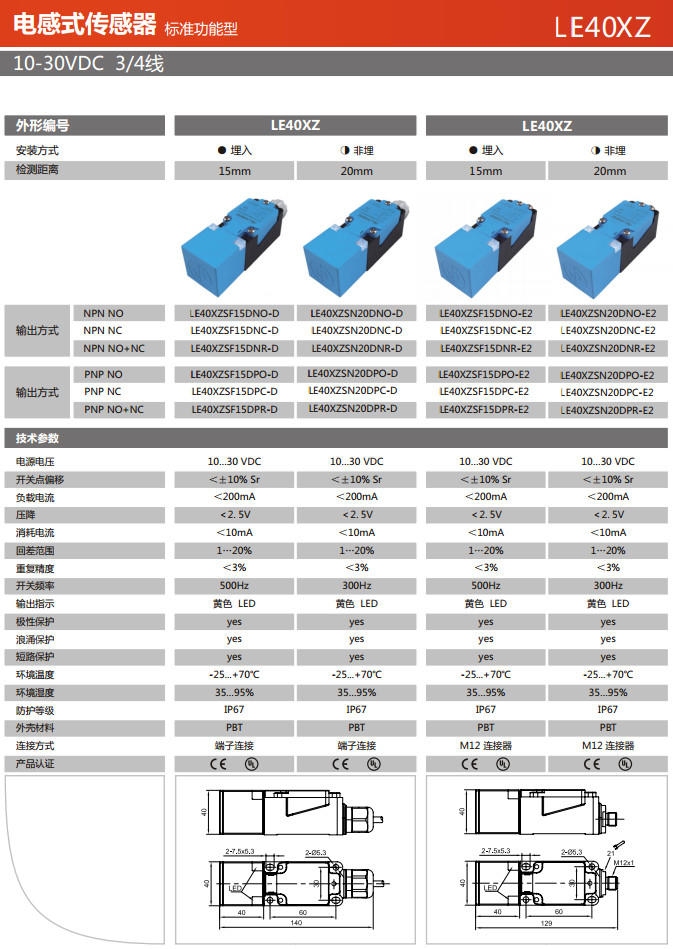 詳細信息 LE40XZSF15DNO-D,LE40XZSF15DNC-D,LE40XZSF15DNR-D,LE40XZSN20DNO-D,LE40XZSN20DNC-D,電感式傳感器
