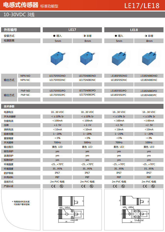 LE17SF05DNO,LE17SF05DNC,LE17SN08DNO,LE17SN08DNC,LE18SF05DNO,LE18SF05DNC,LE18SN08DNO,電感式傳感器