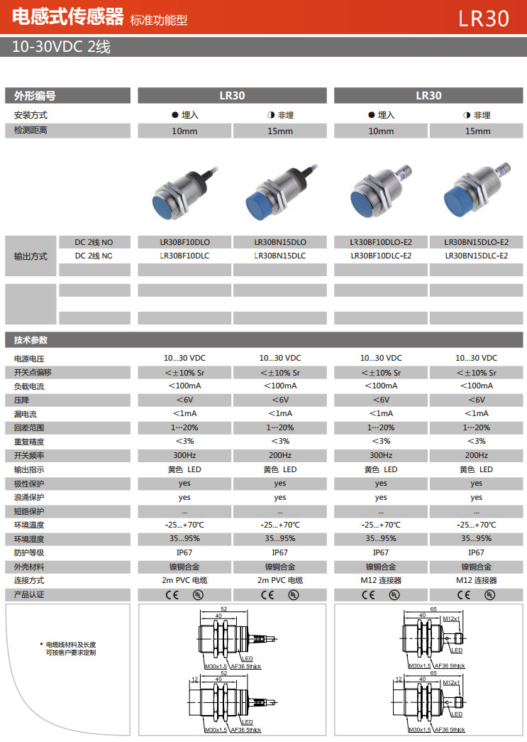 詳細信息 LR30BF10DLO,LR30BF10DLC,LR30BN15DLO,LR30BN15DLC,LR30BF10DLO-E2,LR30BF10DLC-E2,LR30BN15DLO-E2,LR30BN15DLC-E2,電感式傳感器