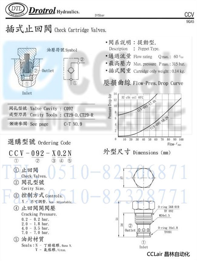 CCV-092-X0.2N,CCV-092-X2.0N,CCV-092-X4.0N,CCV-092-X7.0N,磐龍插式止回閥,