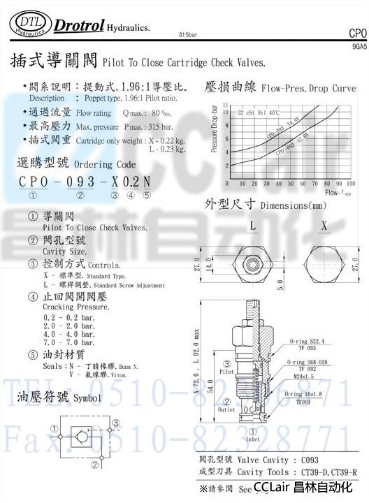 CPO-093-X0.2N,CPO-093-X2.0N,CPO-093-X4.0N,CPO-093-X7.0N,磐龍插式導開閥,