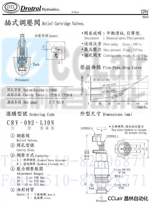 CRV-092-K10N,CRV-092-K10V,CRV-092-K20N,磐龍插式調(diào)壓閥,