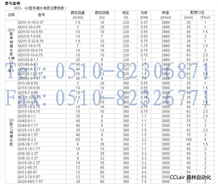 詳細(xì)信息 QX15-7-0.55,QX1.5-32-0.75,QX7-18-0.75,潛水泵