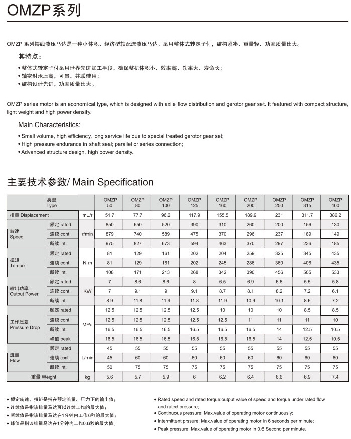 OMZP50,OMZP80,OMZP100,OMZP125,OMZP160,OMZP200,OMZP250,OMZP315,OMZP400,擺線馬達(dá)