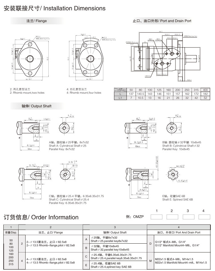 詳細(xì)信息 OMZP50,OMZP80,OMZP100,OMZP125,OMZP160,OMZP200,OMZP250,OMZP315,OMZP400,擺線馬達(dá)