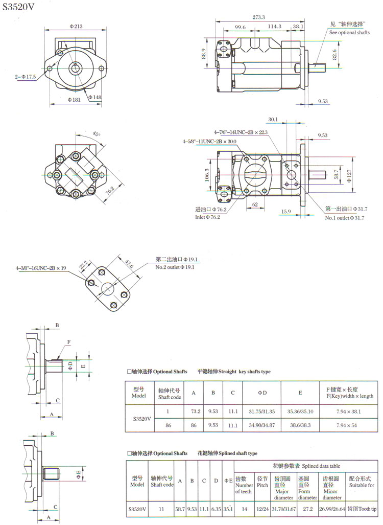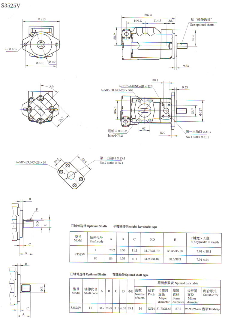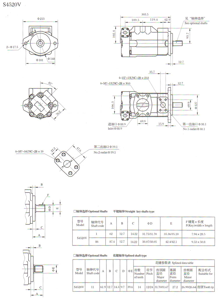 S2520V10A,S4520V42A,S4525V45A,S2520V15A,4525V57A,S4535V60A,葉片泵