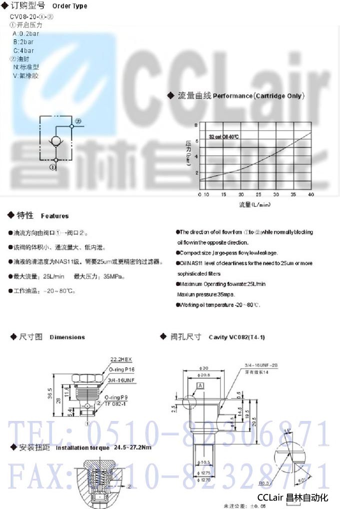 詳細信息 CV08-20-A-N,CV08-20-A-V,CV08-20-B-N,單向閥