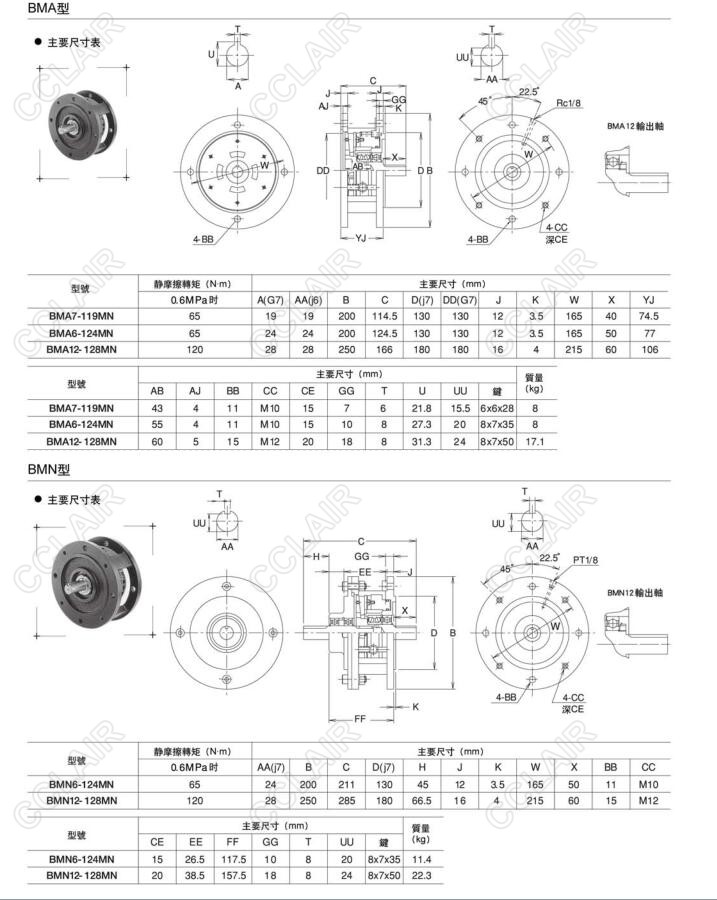 BMA7-119MN,BMA6-124MN,BMA12-128MN,BMN6-124MN,BMN12-128MN,空壓通軸制動器