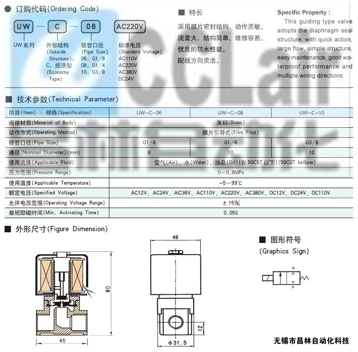 UW-C-06,UW-C-08,UW-C-10,CW-C,LW-C,UW-L,電磁閥