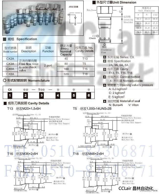 CX2A,CX3A,CX6A,CX8A,插式單向閥