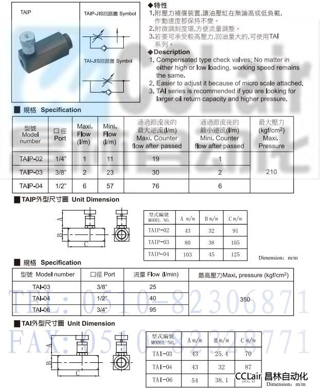 詳細信息 TAIP-02,TAIP-03,TAIP-04,TAI-03,TAI-04,TAI-06,壓力補償節(jié)流閥