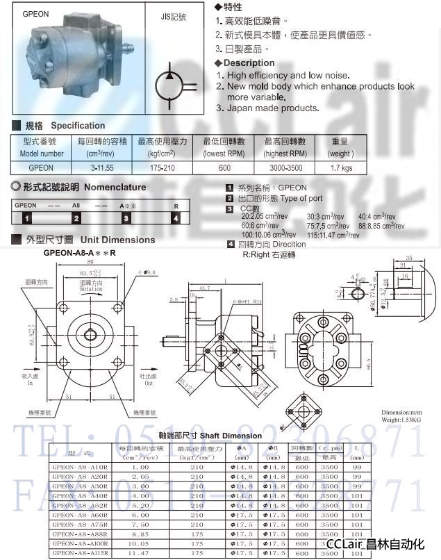 GPE0N-A8-A10R,GPE0N-A8-A20R,GPE0N-A8-A30R,GPE0N-A8-A40R,齒輪泵