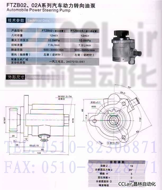 FTZB02,FTZB02A,汽車動(dòng)力轉(zhuǎn)向油泵