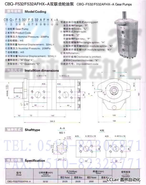 CBQ-F532/F532AFHX-A,雙聯(lián)齒輪油泵