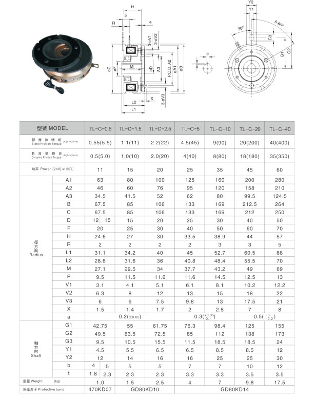 TL-C-0.6,TL-C-1.5,TL-C-2.5,TL-C-5,TL-C-10,TL-C-20,TL-C-40,內(nèi)軸承式電磁離合器