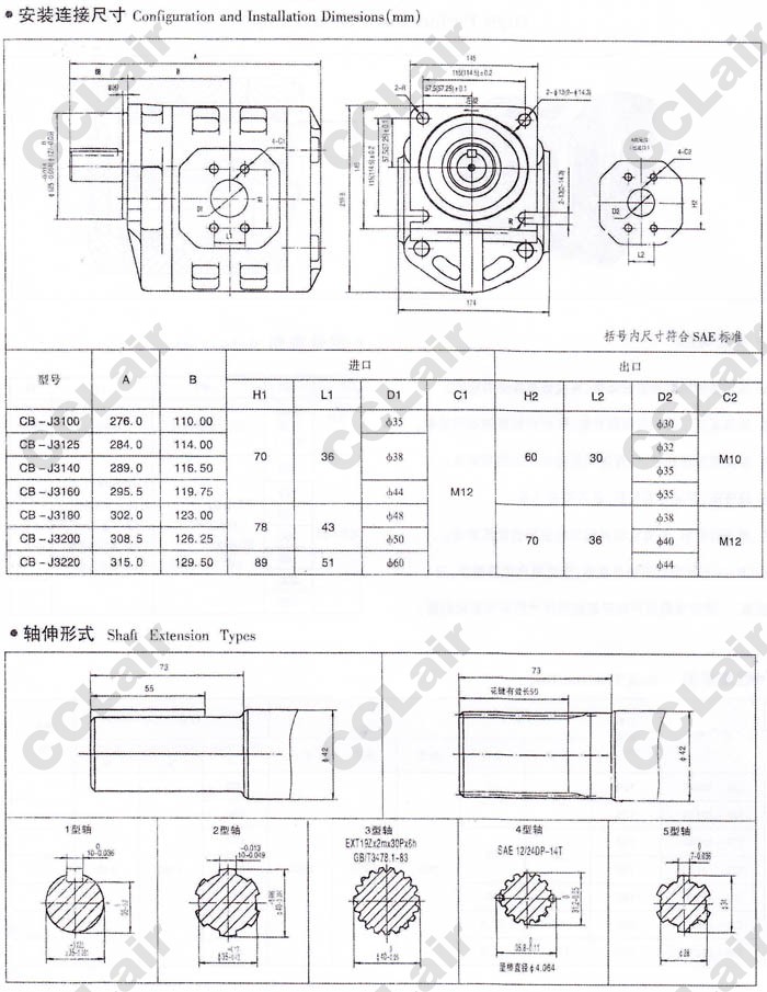 CB-J3100,CB-J3125,CB-J3140,CB-J3160,CB-J3180,CB-J3200,CB-J3220,高壓齒輪油泵,YUCIYUKEN |