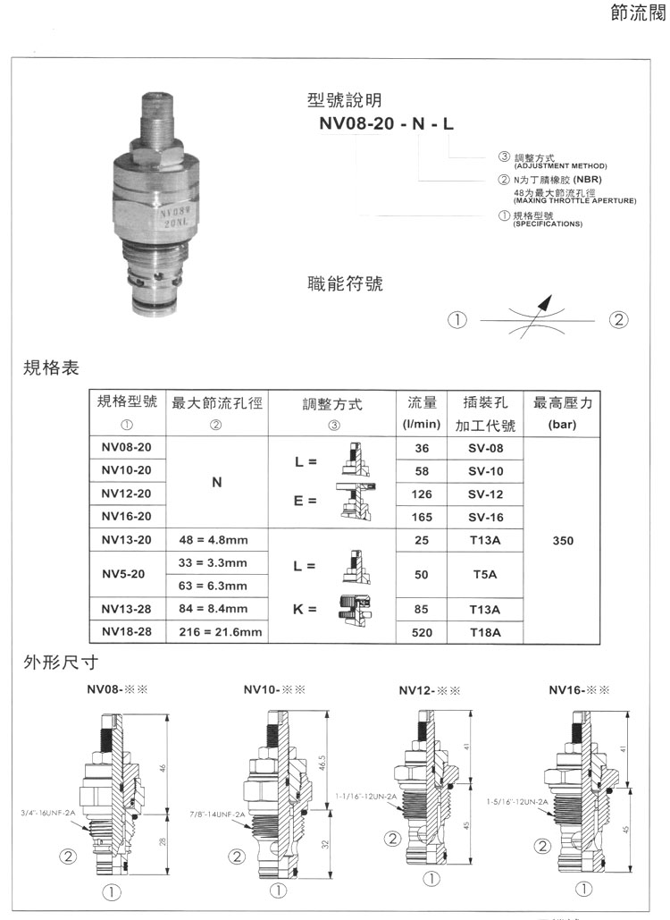 NV08-20,NV10-20,NV12-20,NV16-20,NV13-20,NV5-20,NV13-28,NV18-28,NV08-20-N-L,節(jié)流閥