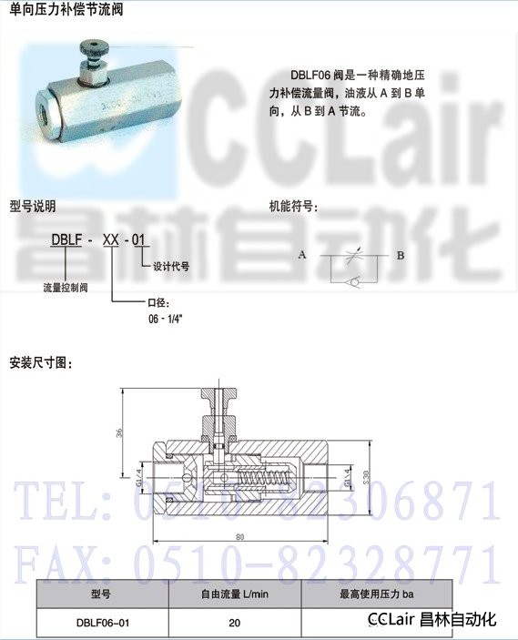 DBLF06-01,單向壓力補(bǔ)償流量閥