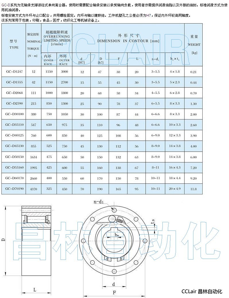 GC-D1247,GC-D1555,GC-D2068,GC-D2590,單向離合器