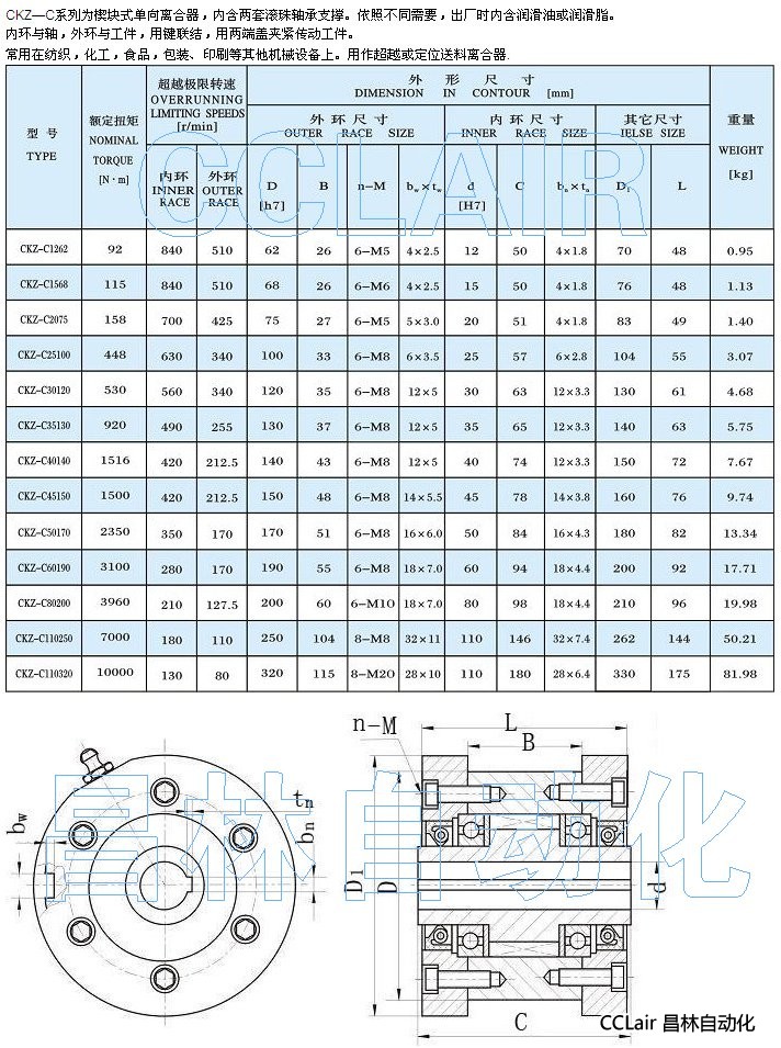 詳細信息 CKZ-C1262,CKZ-C1568,CKZ-C2075,CKZ-C25100,單向離合器