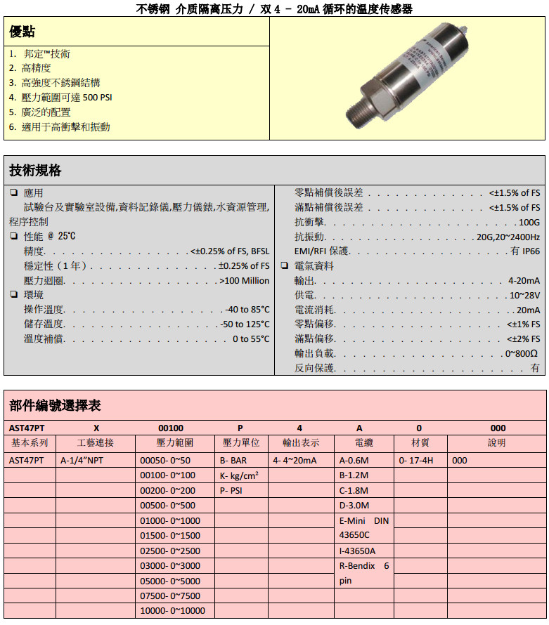 AST47PT-A-00050-B,AST47PT-A-02500-P,AST47PT-A-10000-K,溫度傳感器