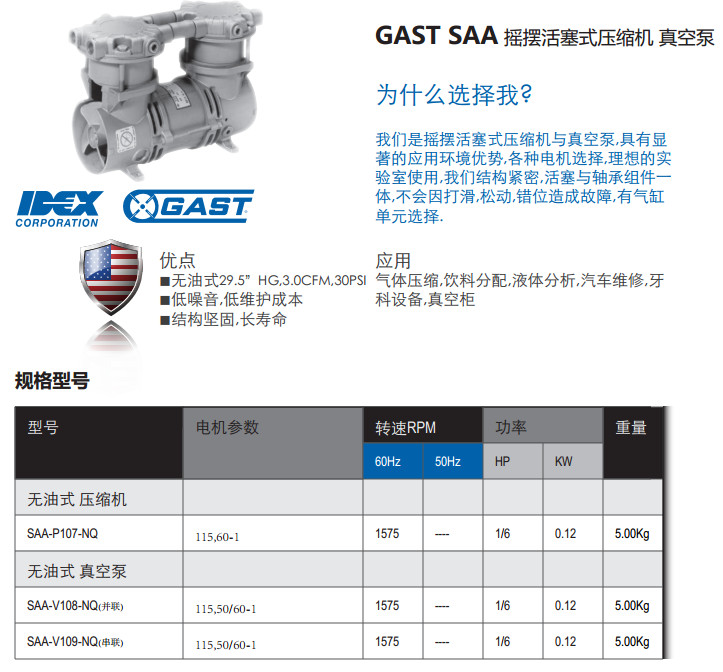 SAA-P107-NQ,SAA-V108-NQ,SAA-V109-NQ,搖擺活塞式壓縮機/真空泵