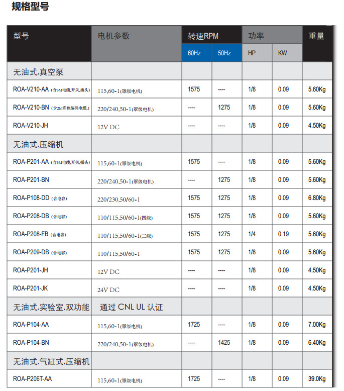 ROA-V210-AA,ROA-P201-AA,ROA-P108-DD,ROA-P209-DB,ROA-P104-AA,搖擺活塞式真空泵/壓縮機(jī)