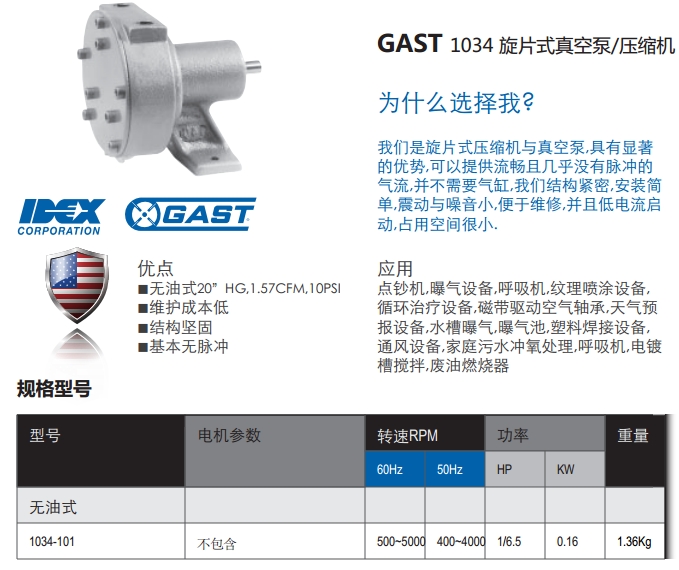 1034-101,旋片式壓縮機/真空泵