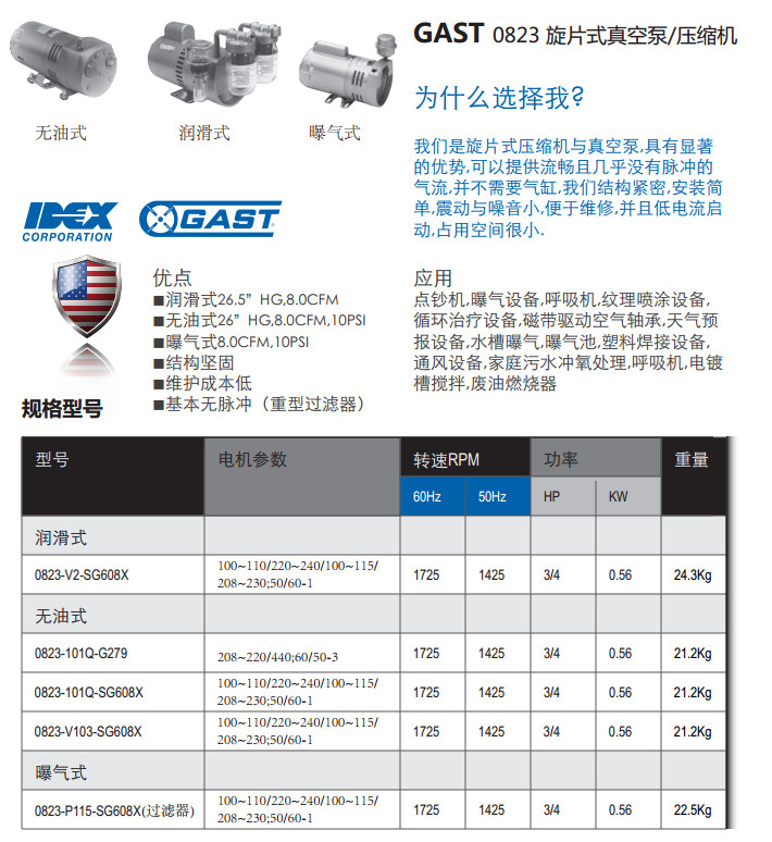 0823-V2-SG608X,0823-101Q-G279,0823-101Q-SG608X,0823-V103-SG608X,旋片式真空泵/壓縮機(jī)