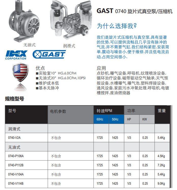 0740-V2A,0740-P106A,0740-P112B,0740-V104A,0740-V114B,旋片式真空泵/壓縮機