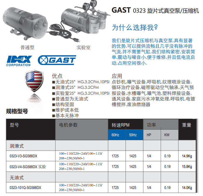 0323-V3-SG588DX,0323-V4-SG588DX,0323-101Q-SG588DX,旋片式真空泵/壓縮機