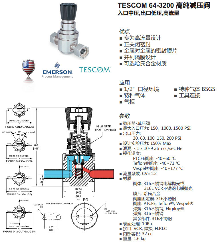 64-324-0,64-324-1,64-324-3,64-326-0,64-326-1,64-326-2,高純減壓閥