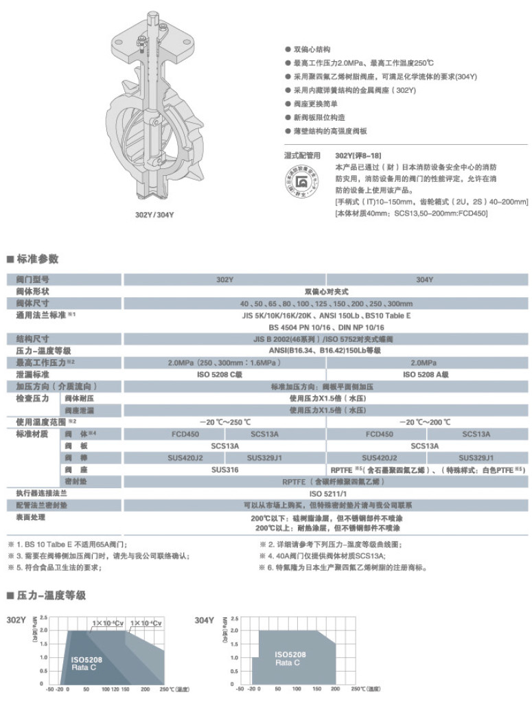 302Y-DN40,302Y-DN50,302Y-DN65,304Y-DN65,304Y-DN80,TOMOE雙偏心對夾式蝶閥