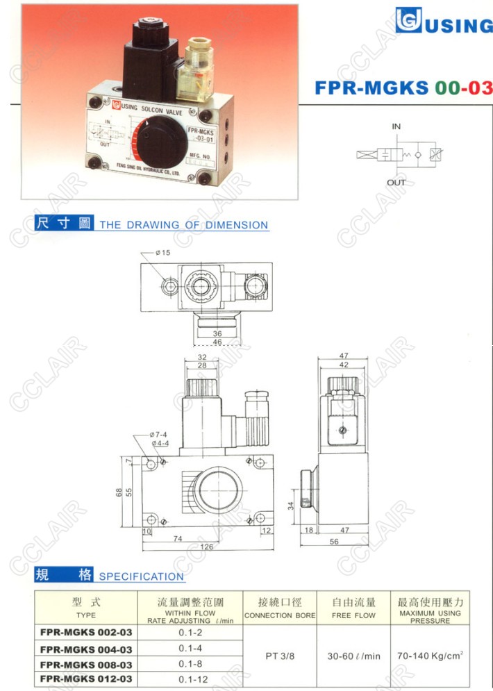 USING峰欣 FPR-MGKS002-03,FPR-MGKS004-03,FPR-MGKS008-03,FPR-MGKS012-03,流量控制閥