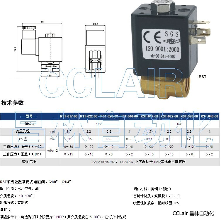 RST-017-06,RST-022-06,RST-028-06,微型常閉式電磁閥,G1/8〞~G1/4〞