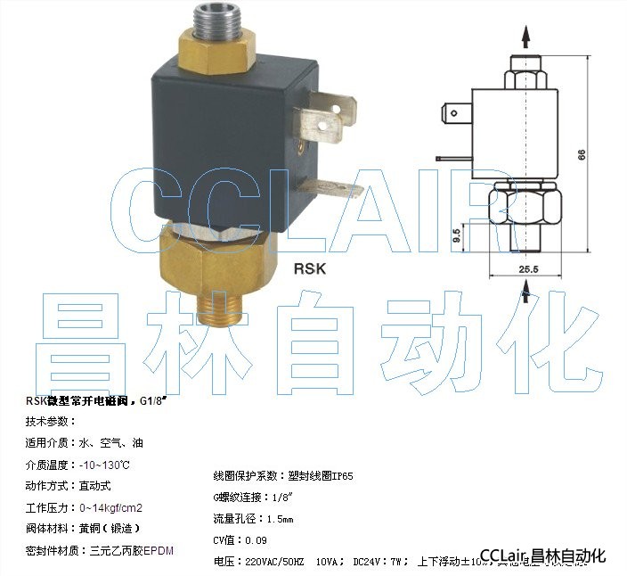 RSK,微型常開(kāi)電磁閥,G1/8〞