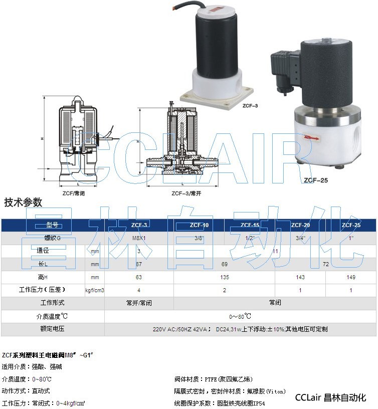 ZCF-3,ZCF-10,ZCF-15,ZCF-20,ZCF-25,塑料王電磁閥M8〞~G1〞