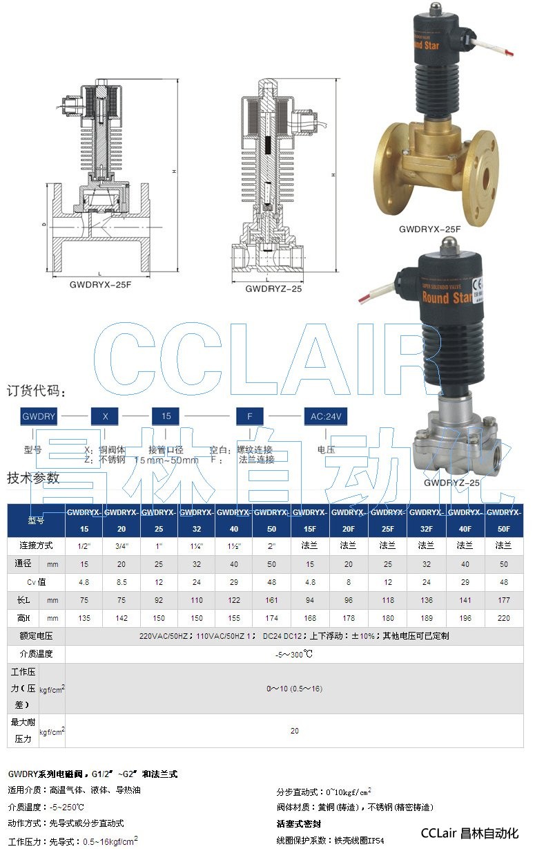 詳細(xì)信息 GWDRYX-15,GWDRYX-20,GWDRYX-25,GWDRYX-32,電磁閥,G1/2〞~G2〞和法蘭式