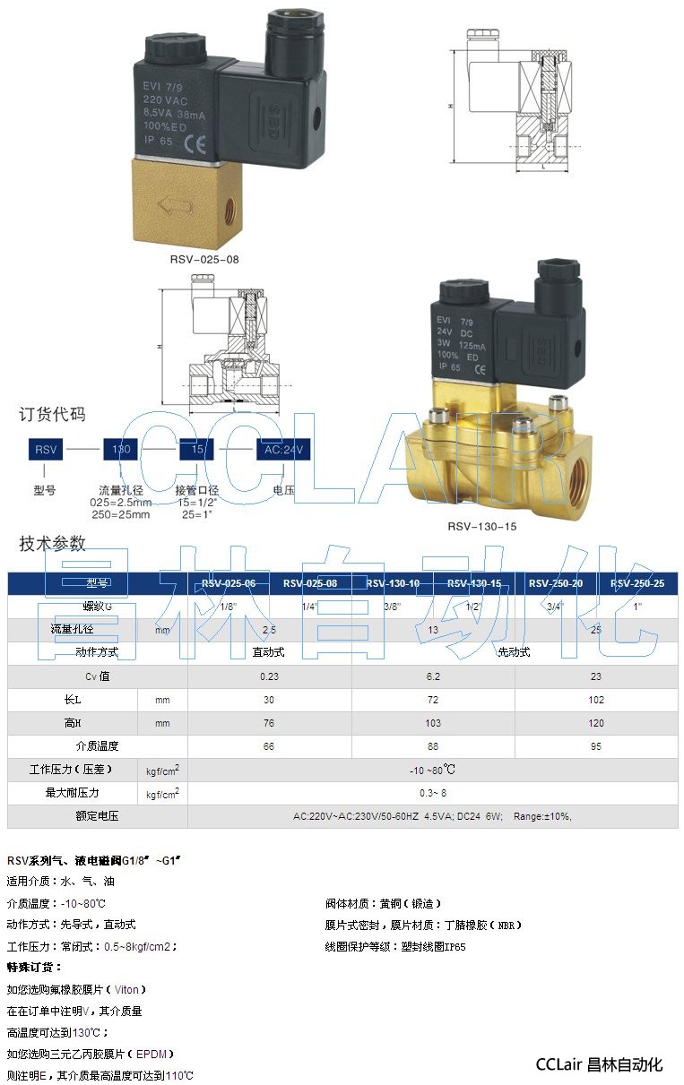 詳細信息 RSV-025-06,RSV-025-08,RSV-130-10,氣、液電磁閥 G1/8〞~G1〞